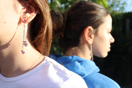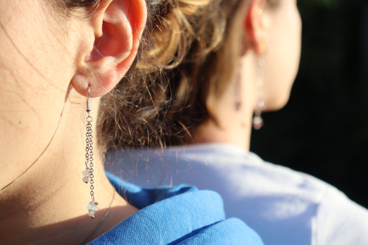 Boucles d'Oreilles Pendantes en Quartz Rose