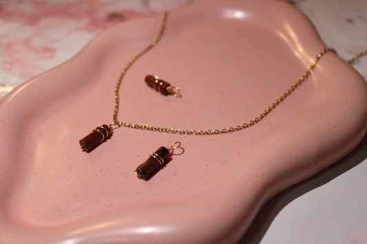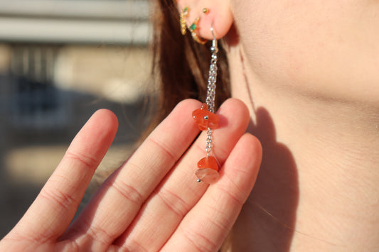 Boucles d'Oreilles Pendantes en Agate Rouge Teintée