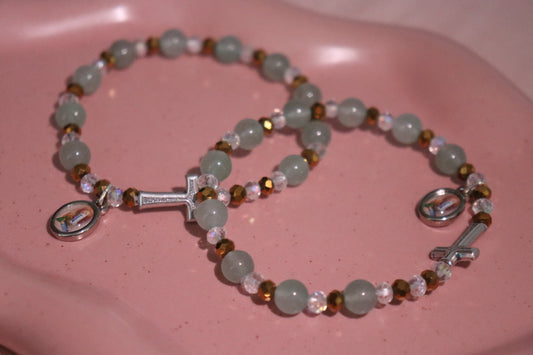 Bracelet en Pierres de Jade et Perles avec Croix et Pendentif de la Vierge Marie – Béni à Lourdes