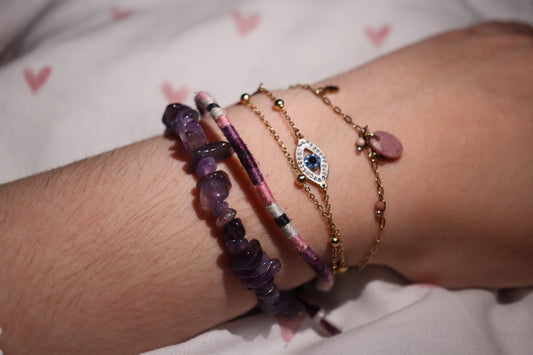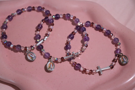 Bracelet en Pierres d'Améthyste et Perles avec Croix et Pendentif de la Vierge Marie – Béni à Lourdes