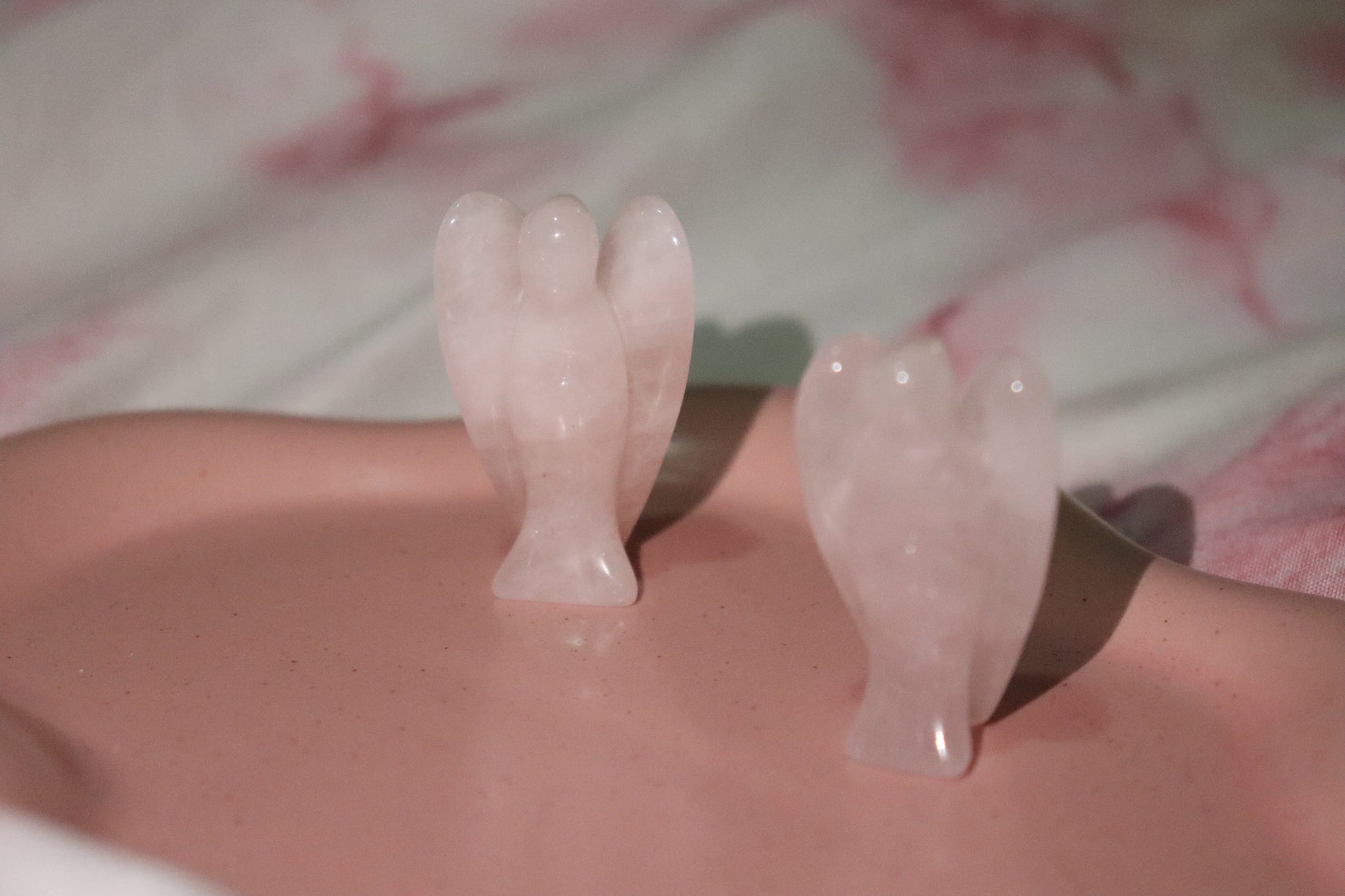 -Exposez l'ange en quartz rose à la lumière du soleil pendant quelques heures pour revitaliser ses propriétés énergétiques.